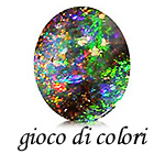 Il gioco di colori è un fenomeno ottico tipicamente presente in molti opali: quando si osservano si può notare come emettano dei bagliori di luce dei colori dell’arcobaleno, sempre nuovi e sempre diversi. Il segreto di questo gioco rimase tale per migliaia di anni, fino a che gli opali non vennero analizzati con il microscopio elettronico, intorno agli anni ’60. L’effetto è dovuto a delle piccole sfere di silicio che causano interferenze e rifrazioni; sistemate in strutture più o meno compatte, bloccano il passaggio della luce facendo brillare la gemma.