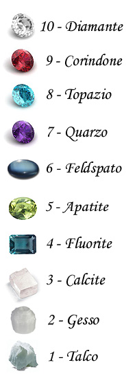 La scala ha come riferimento dieci minerali ordinati progressivamente secondo la loro durezza, dal più tenero caratterizzato dal numero 1, al più duro indicato dal numero più alto, il 10.